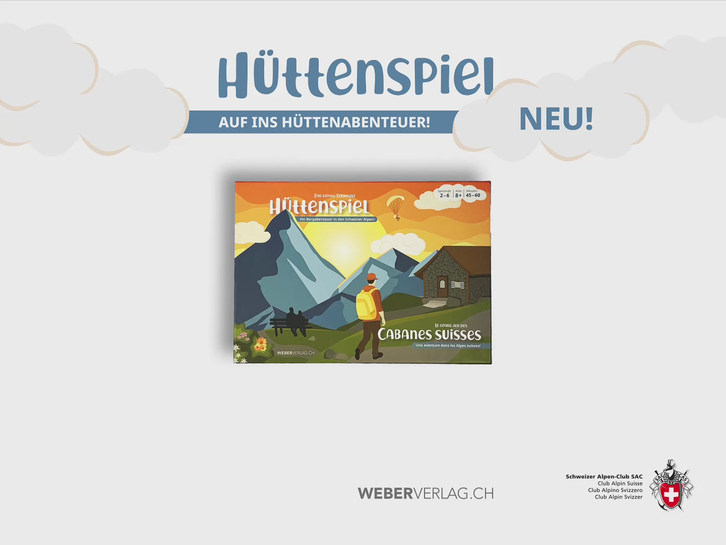 Ce jeu de dés divertissant pour deux à six joueurs convient à partir de huit ans. Au cours de la randonnée, on apprend beaucoup de choses intéressantes sur les cabanes du CAS et sur les nombreuses cabanes privées, toutes situées dans des endroits uniques dans les Alpes suisses.